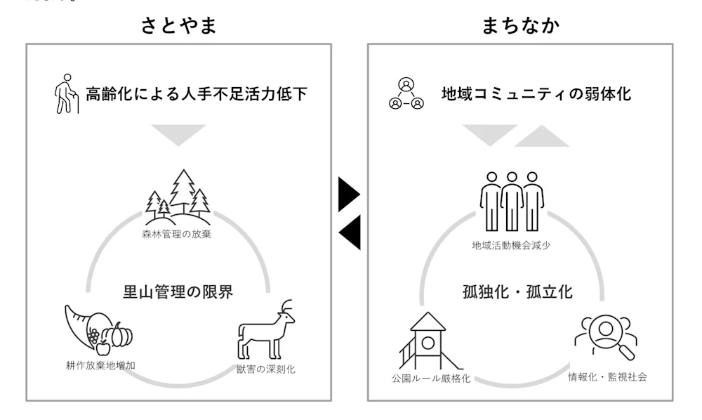 「江坂ひとときプロジェクト」では、里山暮らしに関心のあるまちの人たちに身近な里山体験を提供しつつ、まちと里の課題を共有し、相乗的に課題解決を目指す。
